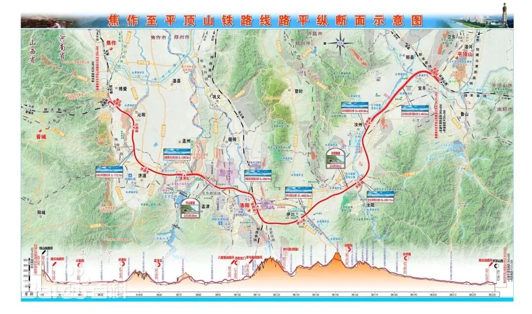 焦平高鐵是國家《中長期鐵路網規劃》中“八縱”之一呼南通道的組成部分,焦平高鐵設計時速350公里,正線全長230.48公里,建成后將實現洛陽至焦作、平頂山1小時直達,并通過銜接鄭太、鄭渝等干線鐵路,形成豫西北至成渝城市群的快速通道。